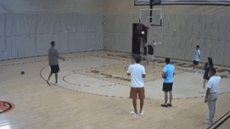 易建联除了满足女粉丝的签名合影之外,易建联也在训练球馆连续命中三分颇为抢镜。